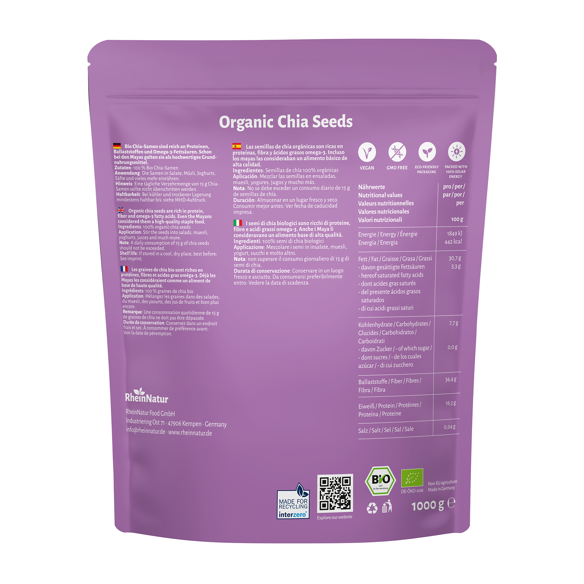 Vertrauen Sie auf RheinNatur Bio Chia Samen für Ihre gesunde und bewusste Ernährung. Bestellen Sie jetzt und erleben Sie die Kraft der Natur!